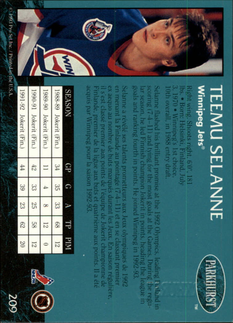 1992-93 - Teemu Selanne - Parkhurst Emerald Ice - #209