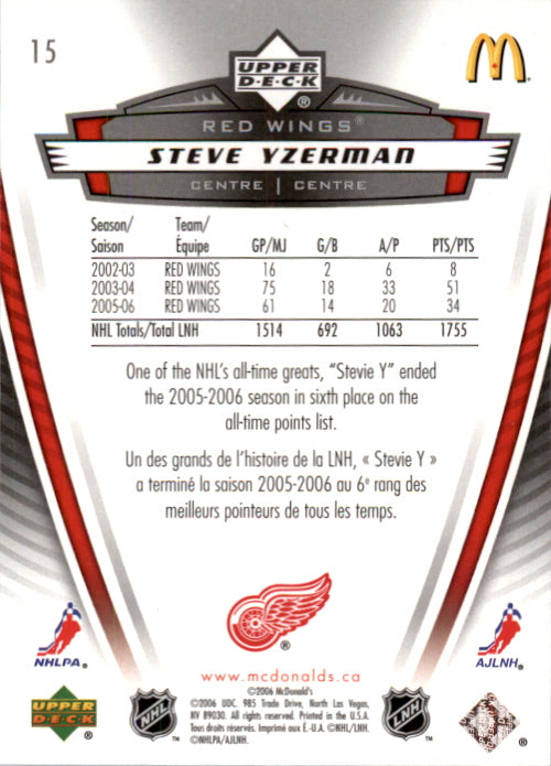 2006-07 - Steve Yzerman - McDonald's Upper Deck - #15