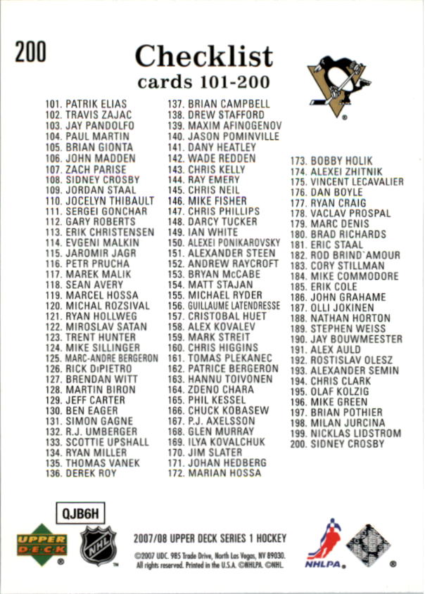 2007-08 - Sidney Crosby CL - Upper Deck - #200