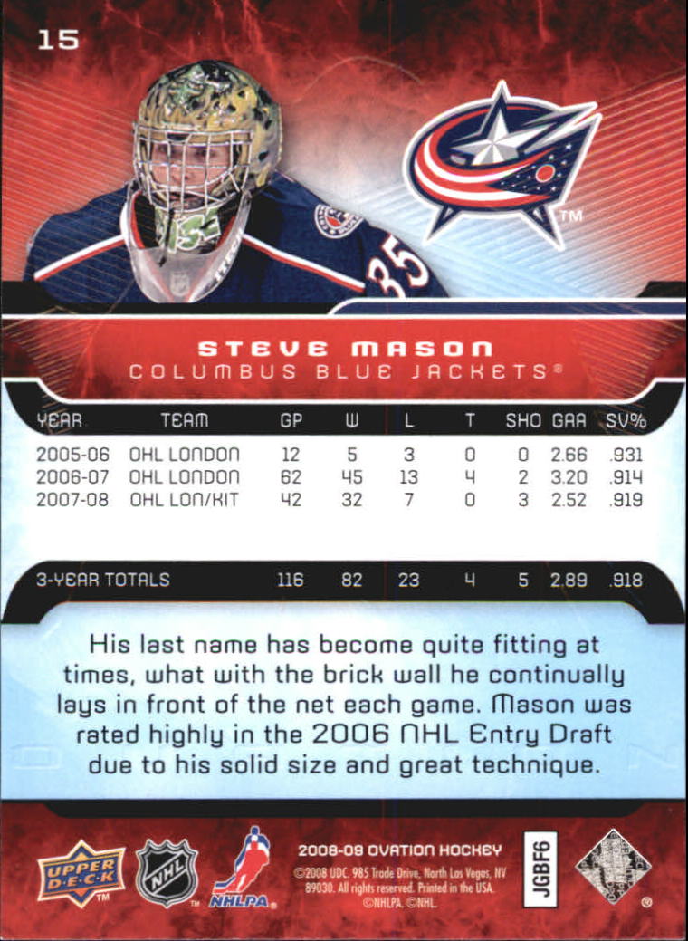 2008-09 Steve Mason RC - Upper Deck Ovation - #15
