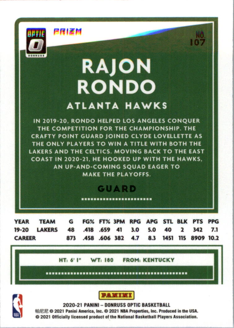 2020-2021 - Rajon Rondo - Donruss Optic Purple - #107