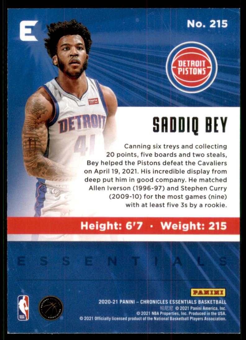 2020-2021 - Saddiq Bey/Essentials - Panini Chronicles - #215