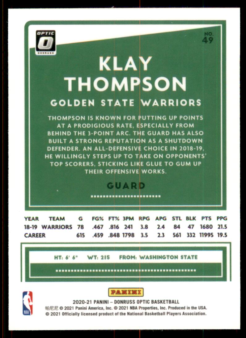 2020-2021 - Klay Thompson - Donruss Optic - #49