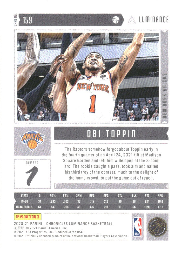 2020-2021 - Obi Toppin/Luminance - Panini Chronicles Pink - #159