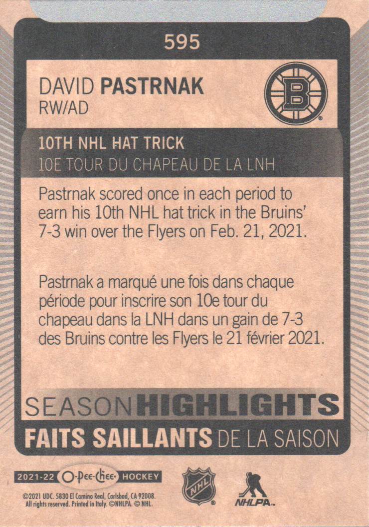 2021-2022 - David Pastrnak - O-Pee-Chee - #595