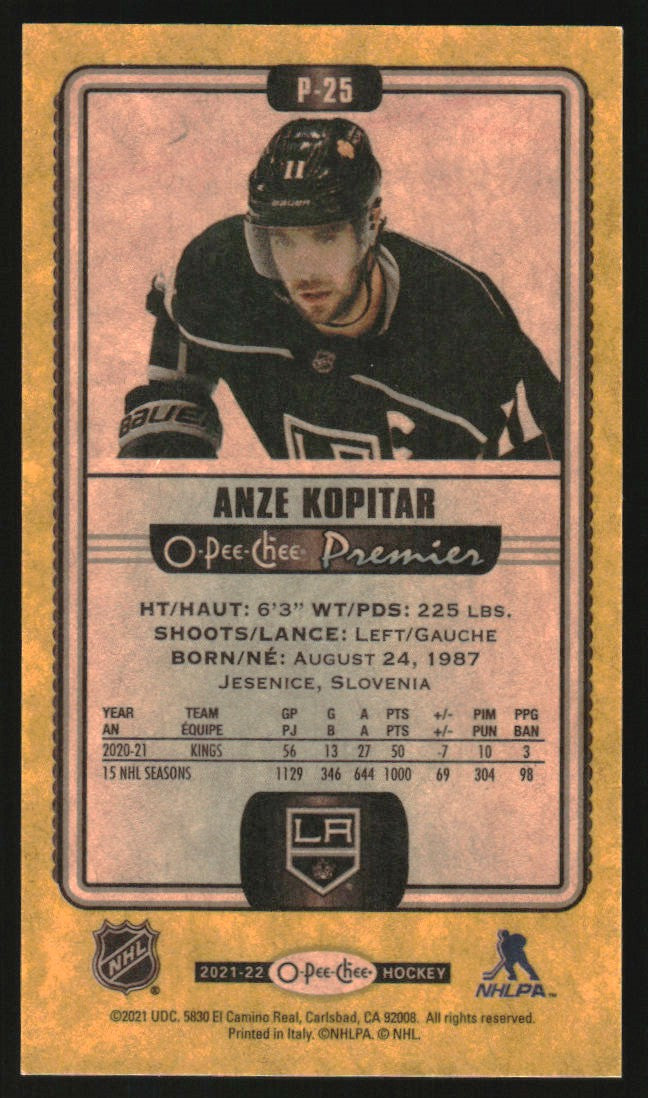 2021-2022 - Anze Kopitar - O-Pee-Chee OPC Premier Tallboys Yellow - #P25