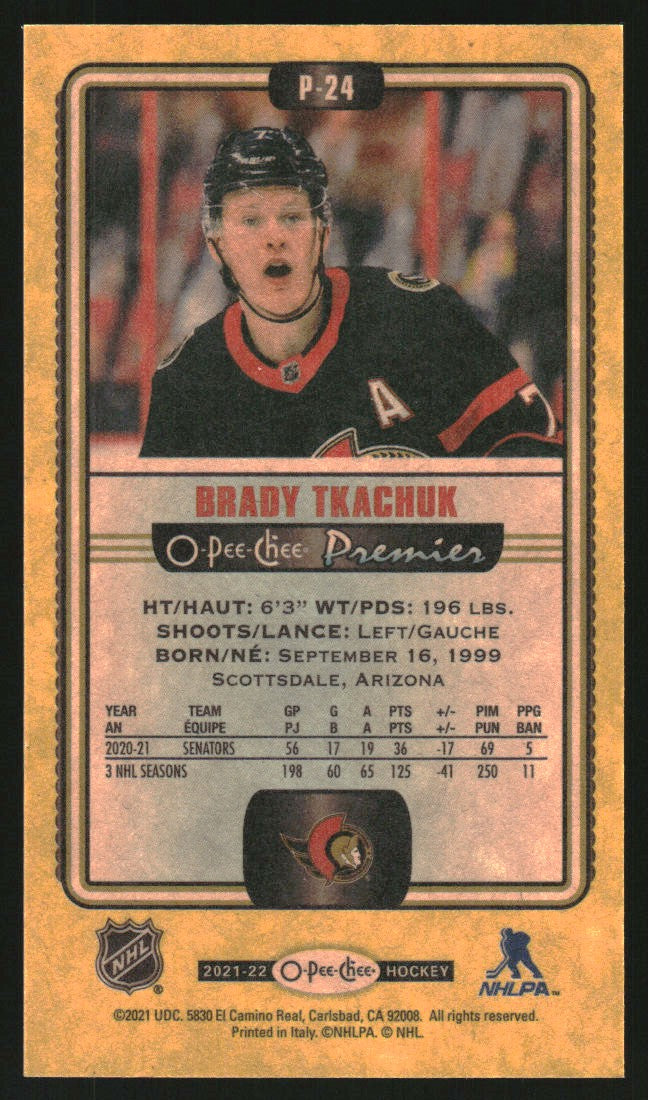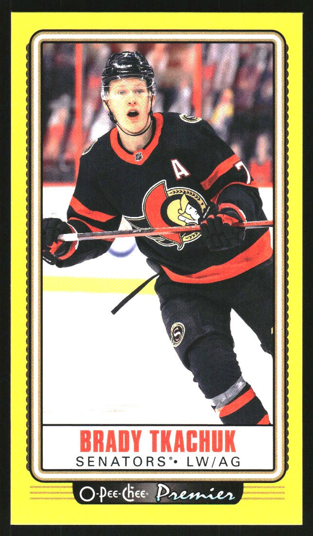 2021-2022 - Brady Tkachuk - O-Pee-Chee OPC Premier Tallboys Yellow - #P24