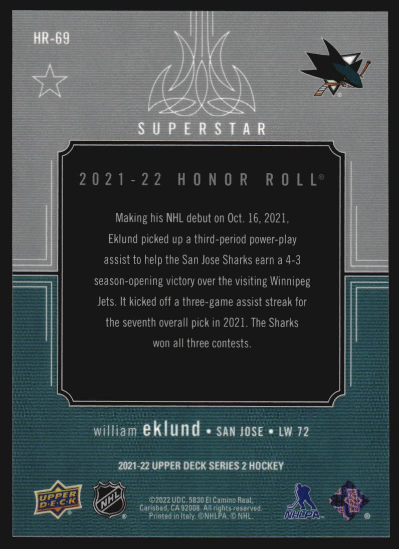 2021-2022 - William Eklund - Upper Deck Honor Roll - #HR69