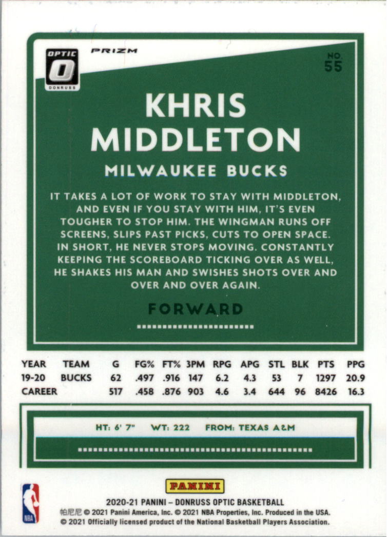 2020-2021 - Khris Middleton - Donruss Optic Purple - #55