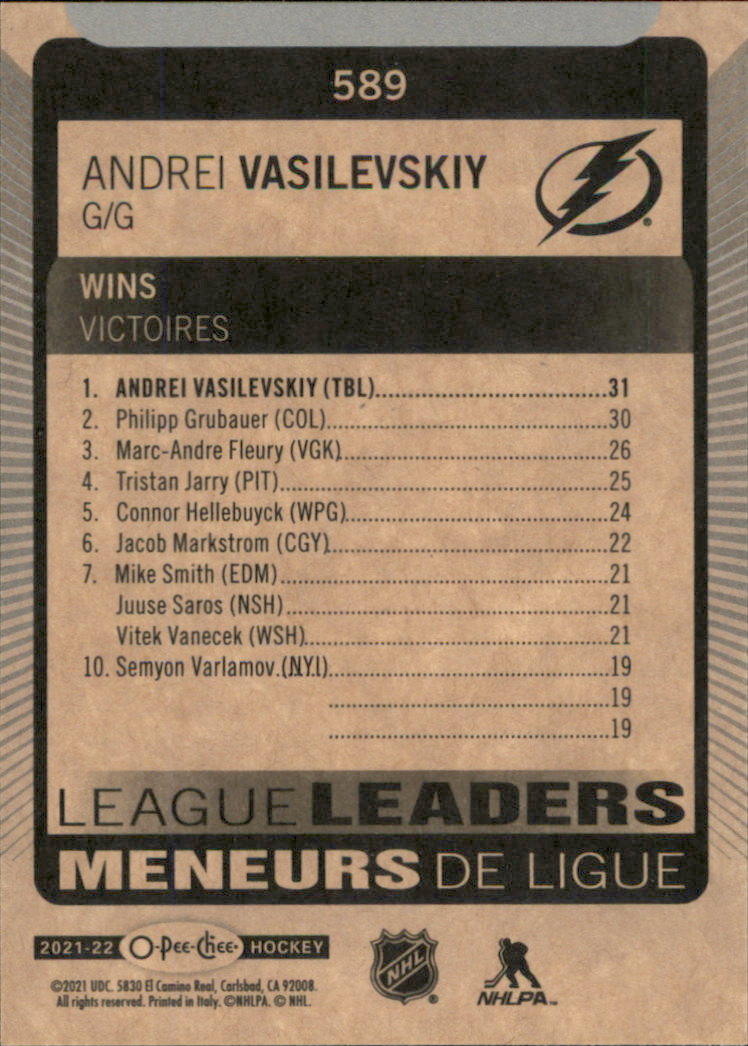 2021-2022 - Andrei Vasilevskiy - O-Pee-Chee - #589