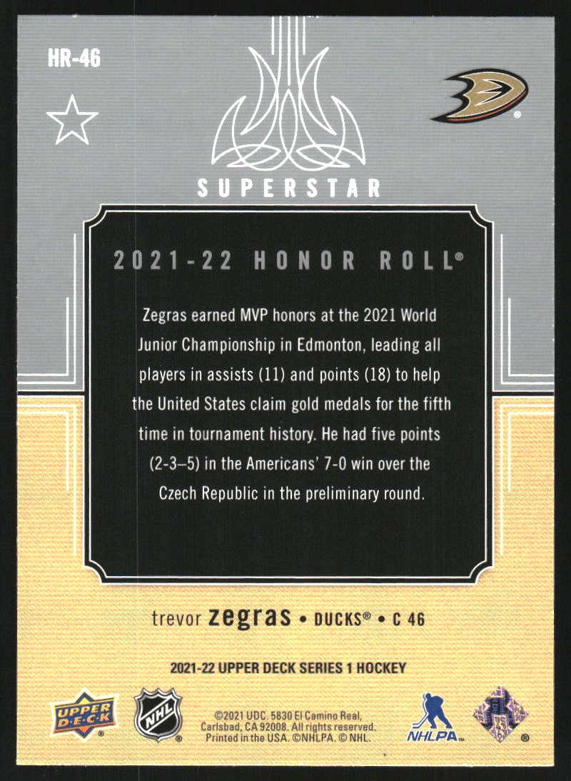 2021-2022 - Trevor Zegras - Upper Deck Honor Roll - #HR46