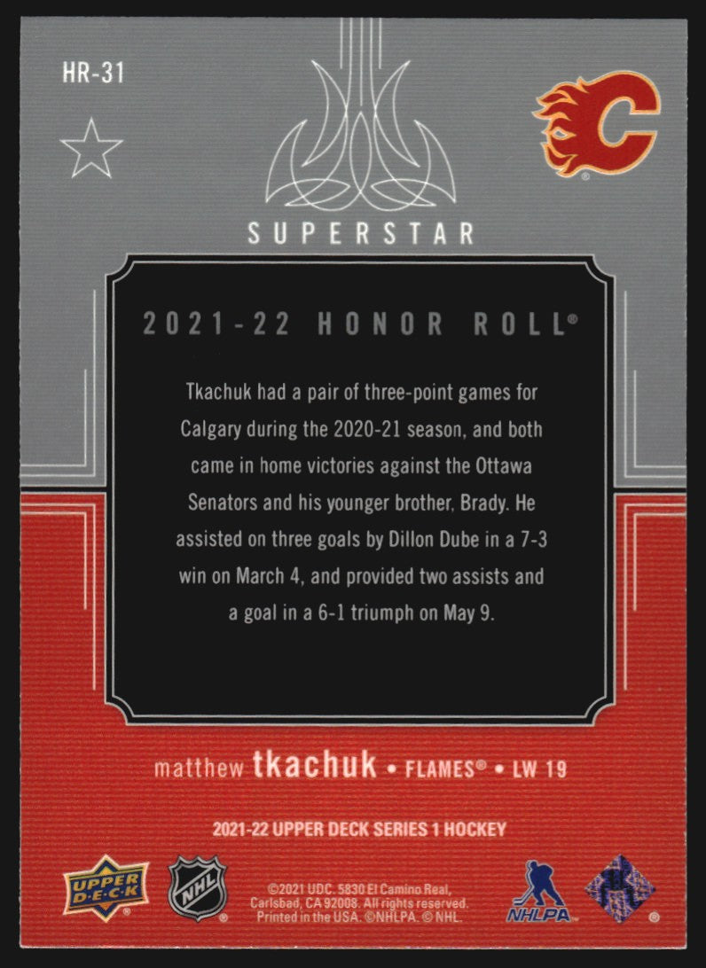 2021-2022 - Matthew Tkachuk - Upper Deck Honor Roll - #HR31