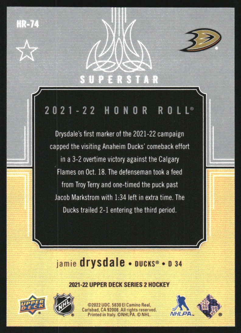 2021-2022 - Jamie Drysdale - Upper Deck Honor Roll - #HR74