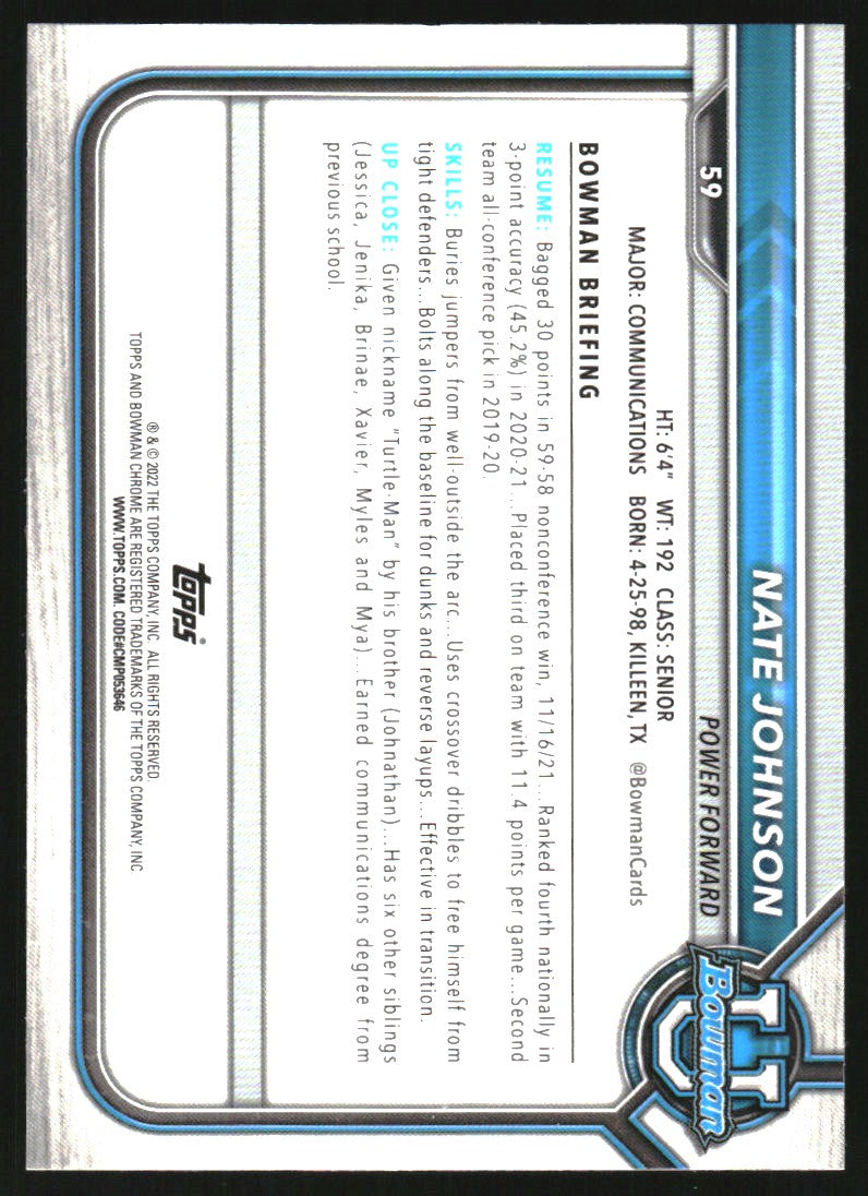 2021-22 - Nate Johnson - Bowman Chrome University Pink Refractors - #59