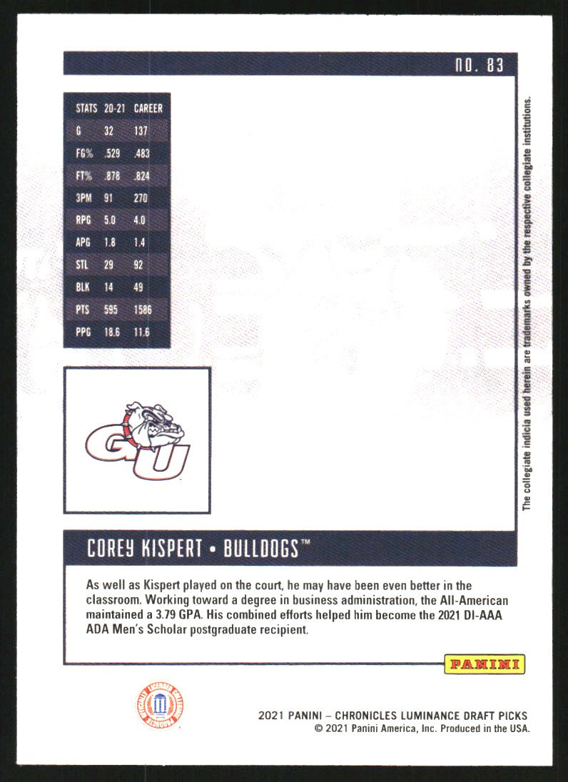 2021-22 - Corey Kispert/Luminance - Panini Chronicles Draft Picks Green - #83