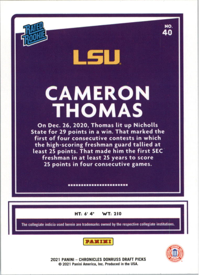 2021-22 - Cameron Thomas/Donruss - Panini Chronicles Draft Picks - #40