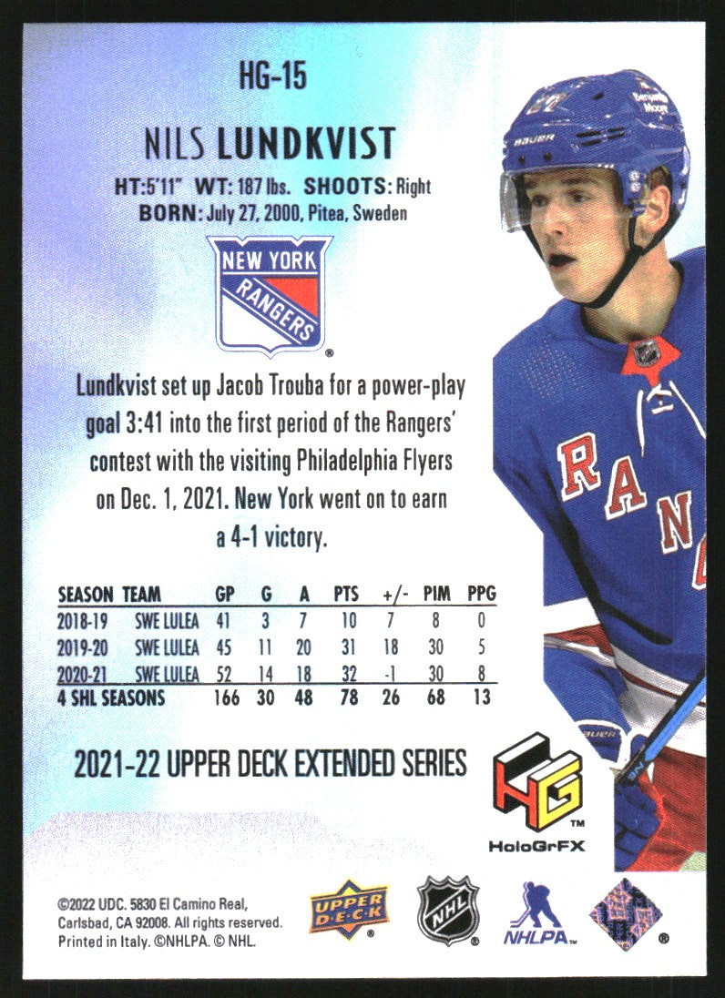 2021-22 - Nils Lundkvist - Upper Deck HoloGrFx Rookies- #HG15