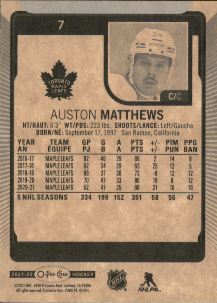 2021-22 - Auston Matthews - O-Pee-Chee - #7