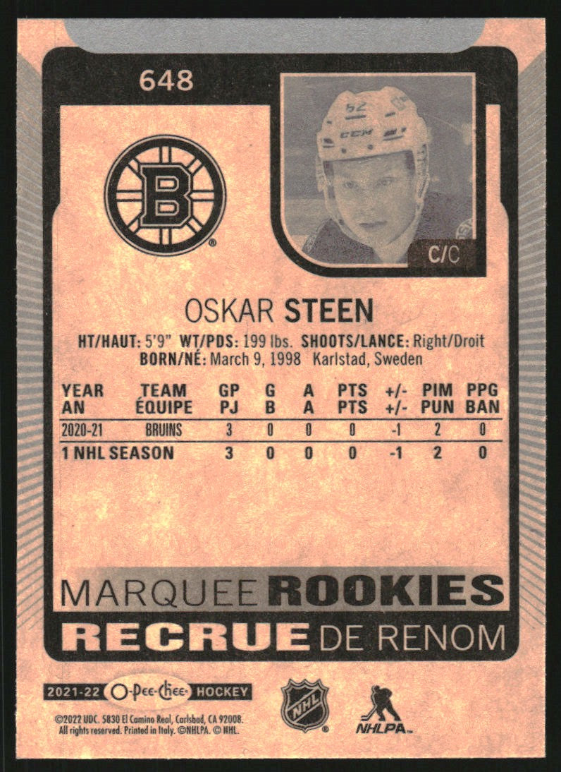 2021-22 - Oskar Steen RC - O-Pee-Chee - #648