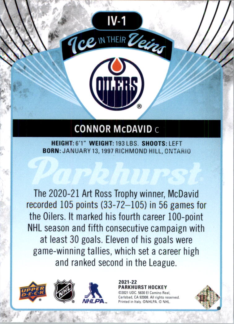 2021-22 - Connor McDavid - Parkhurst Ice in Their Veins - #IV1