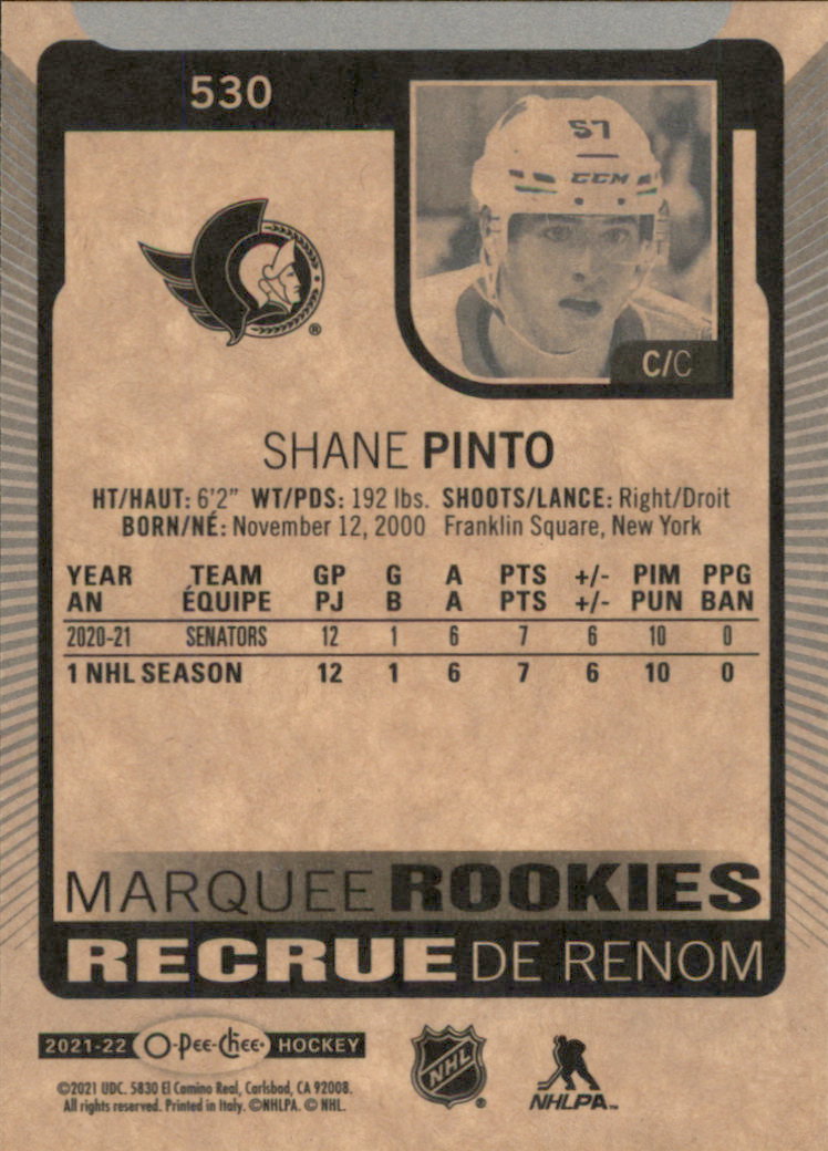 2021-22 - Shane Pinto RC - O-Pee-Chee - #530