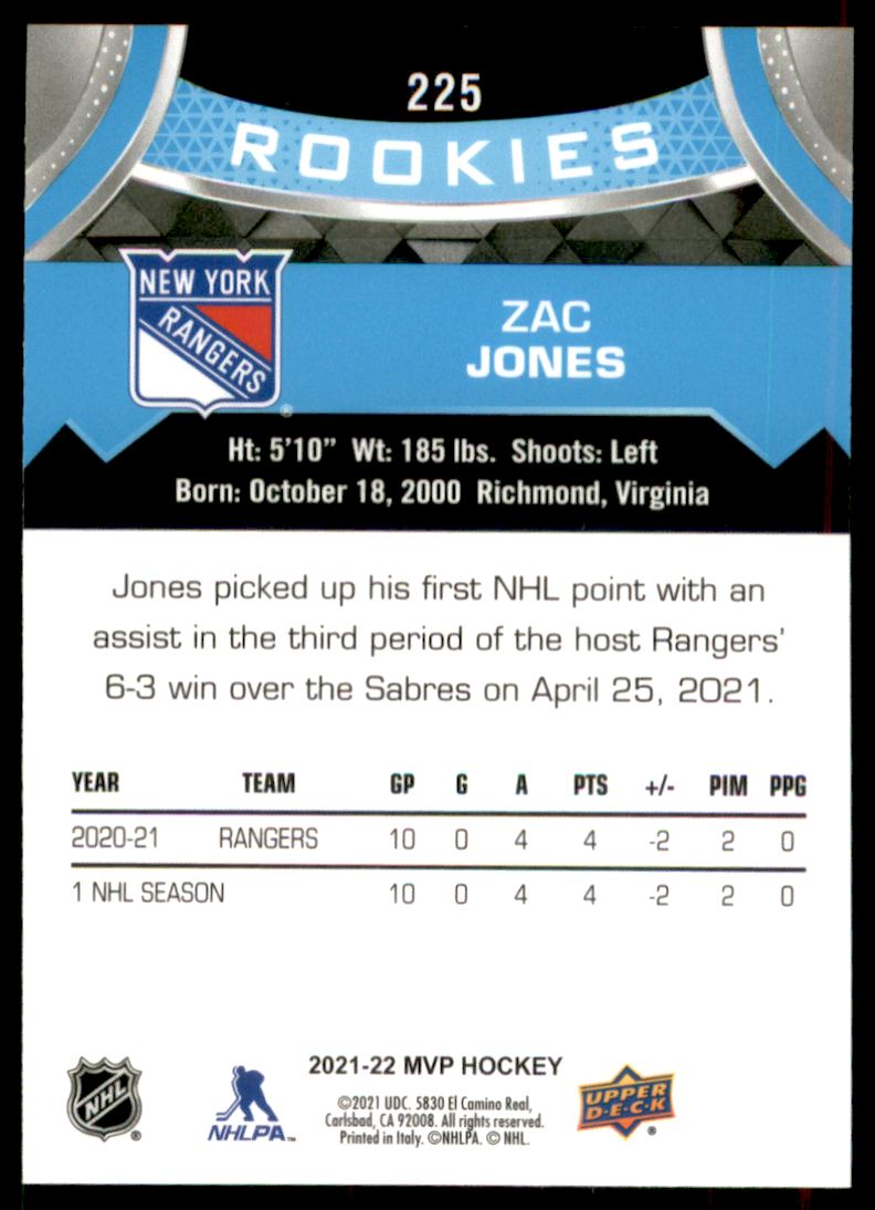 2021-22 - Zac Jones SP RC - Upper Deck MVP - #225