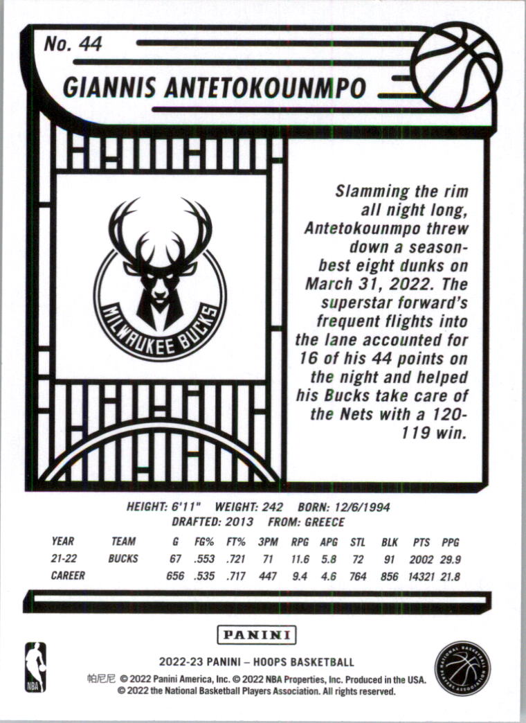 2022-2023 - Giannis Antetokounmpo - NBA Hoops - #44