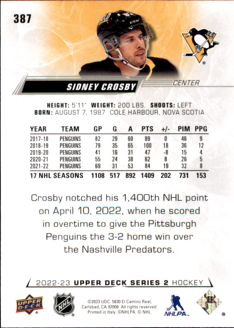 2022-2023 - Sidney Crosby - Upper Deck (Base) - #387