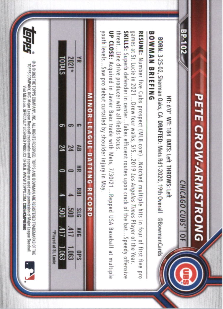 2022 - Pete Crow-Armstrong - Bowman Prospects - #BP102