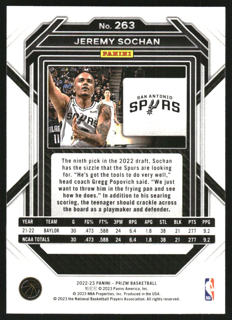 2022-23 Jeremy Sochan RC - Panini Prizm - #263