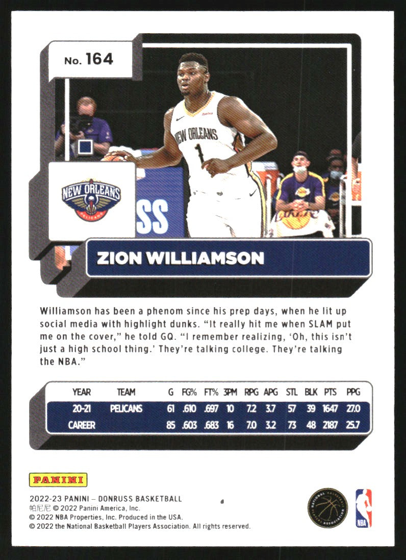 2022-23 - Zion Williamson - Donruss Holo Green Laser - #164