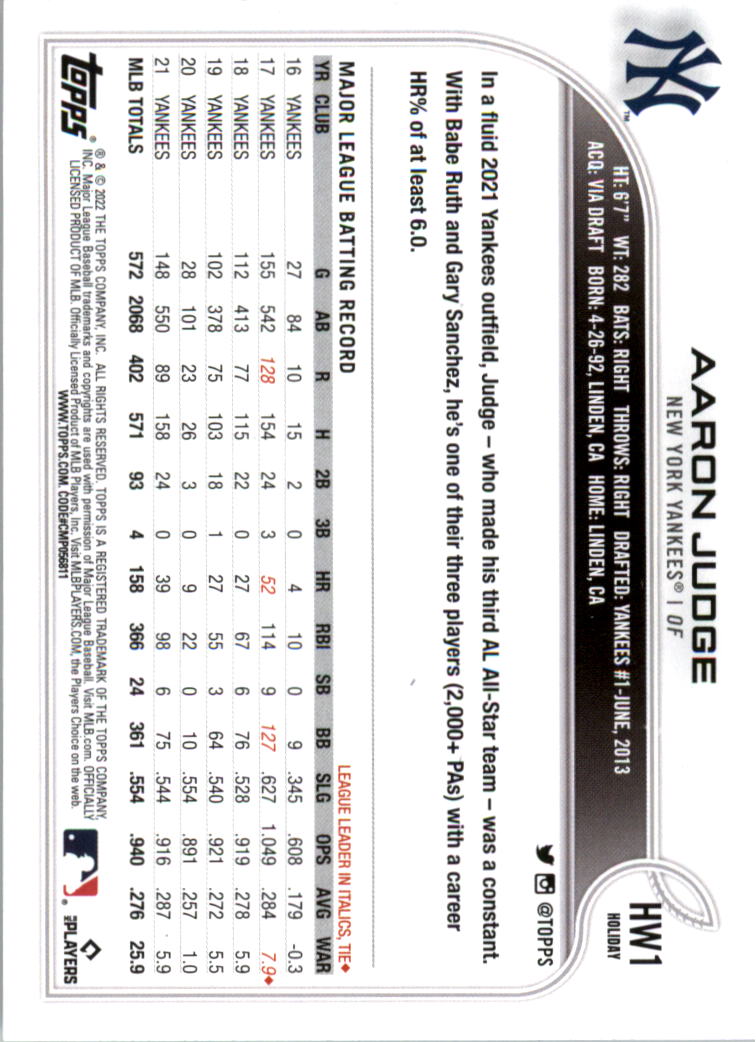 2022 - Aaron Judge - Topps Holiday - #HW1