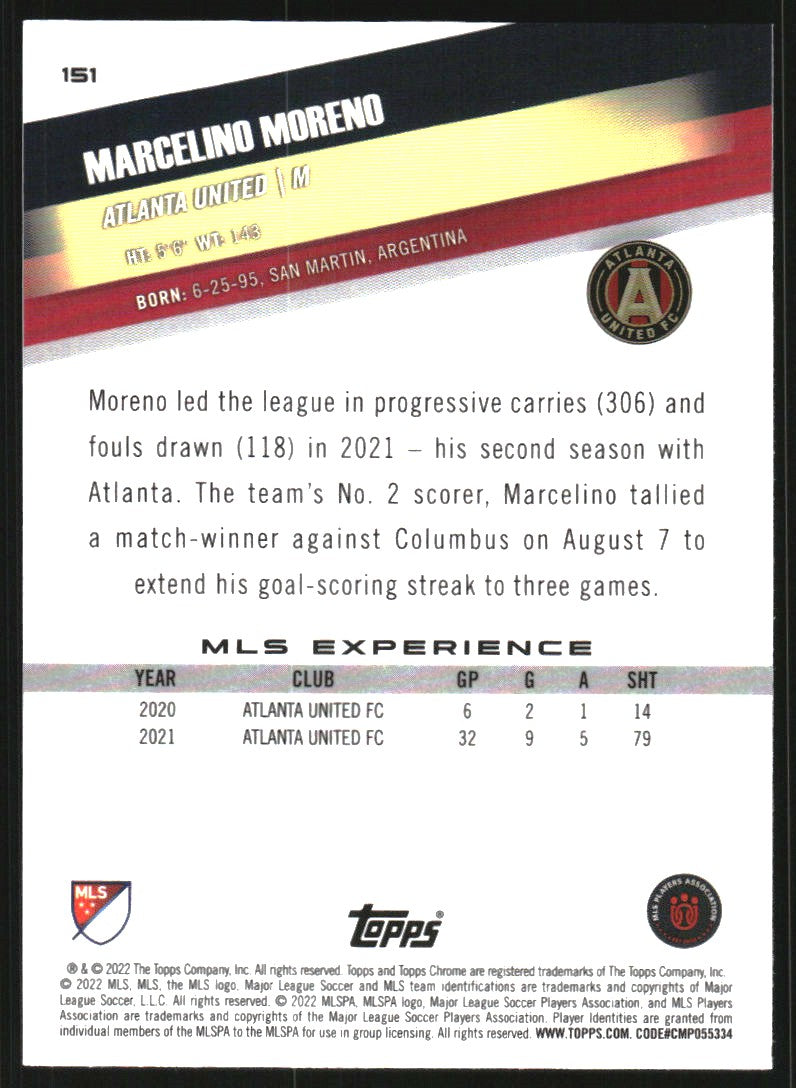 2022 - Marcelino Moreno - Topps Chrome MLS - #151