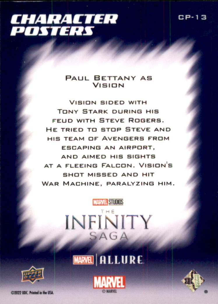 2022 Paul Bettany as Vision - Upper Deck Marvel Studios Allure Character Posters - #CP13