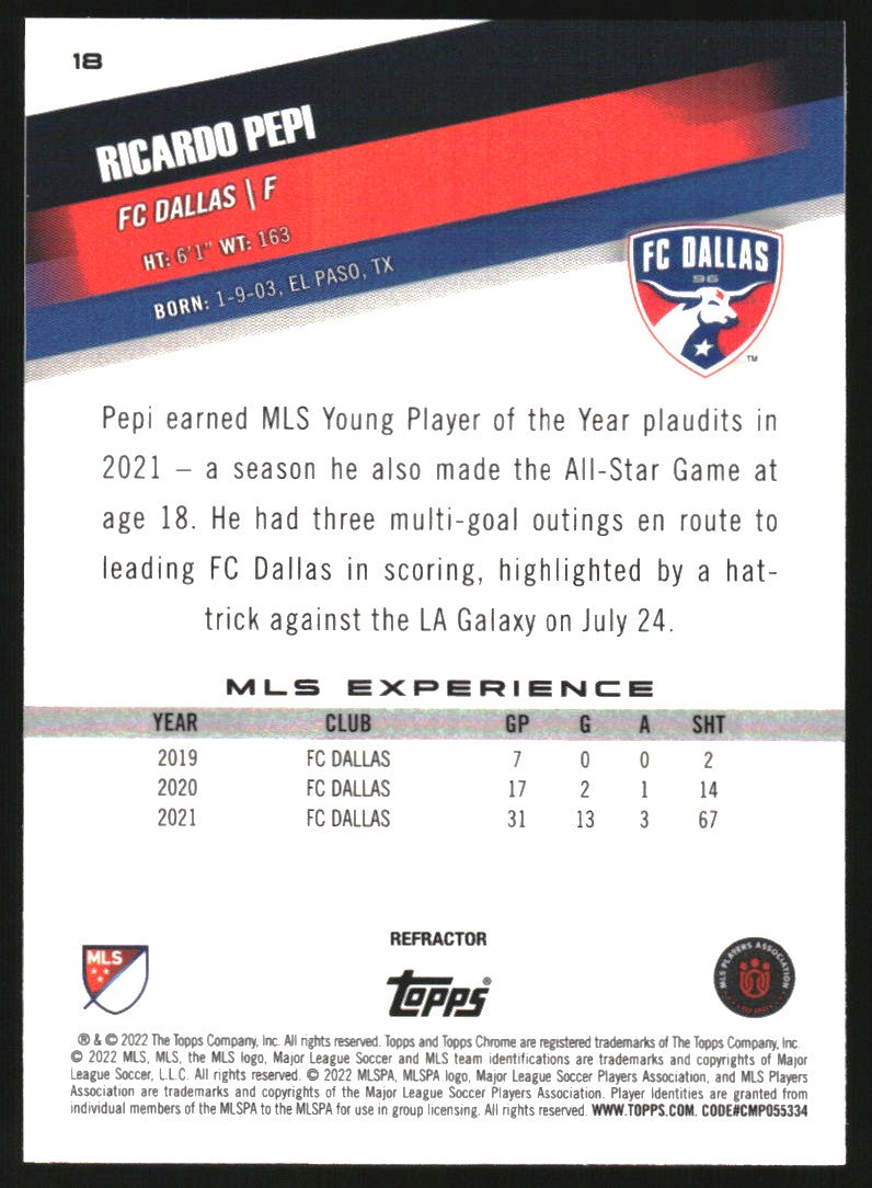 2022 - Ricardo Pepi - Topps Chrome MLS Refractors - #18