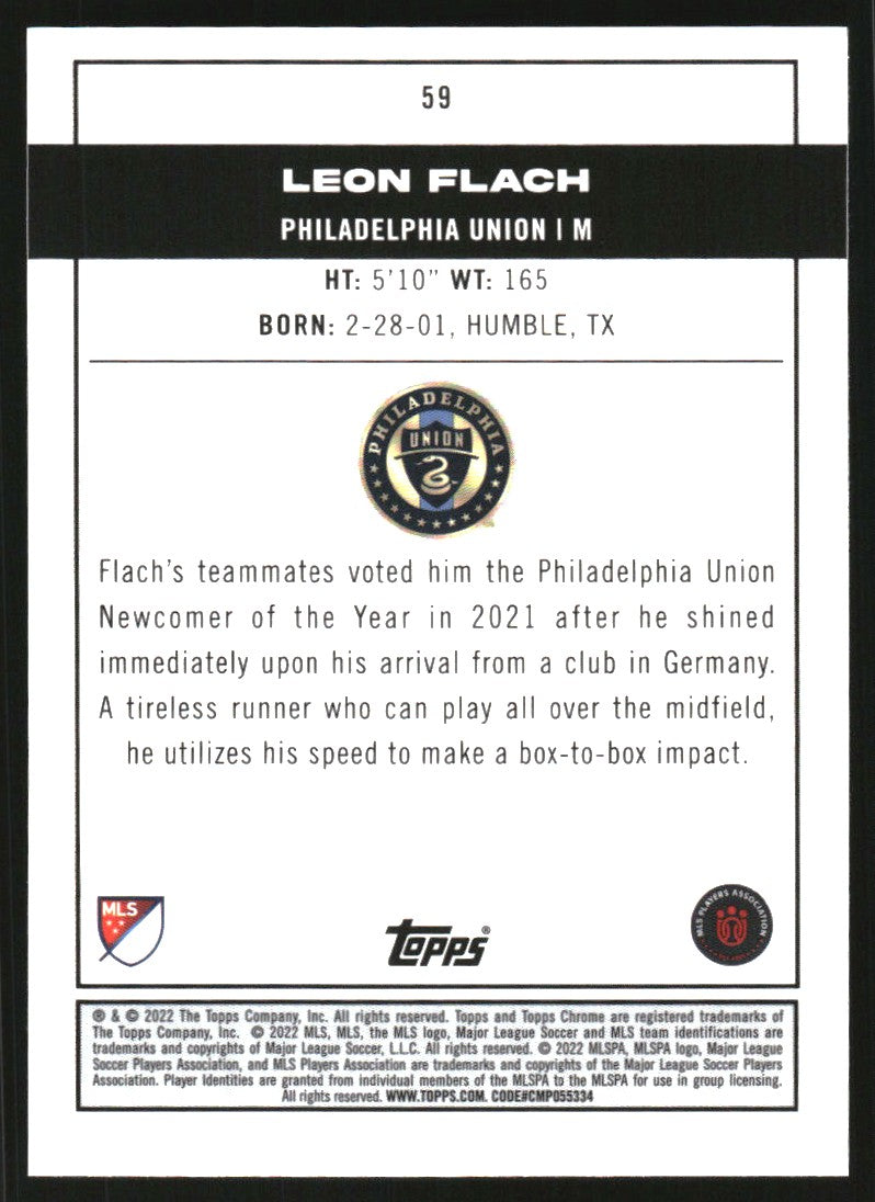 2022 - Leon Flach RC - Topps Chrome MLS - #59