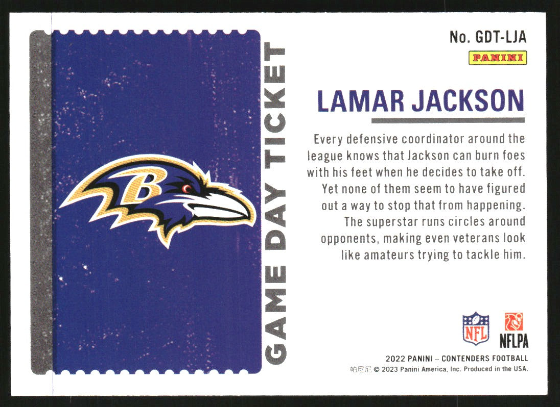 2022 - Lamar Jackson - Panini Contenders Game Day Ticket - #17