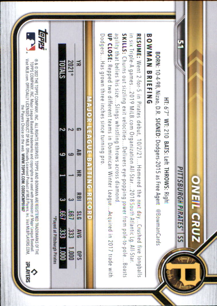 2022 - Oneil Cruz RC - Bowman - #51