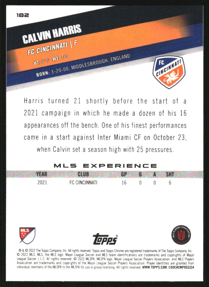 2022 - Calvin Harris RC - Topps Chrome MLS - #182