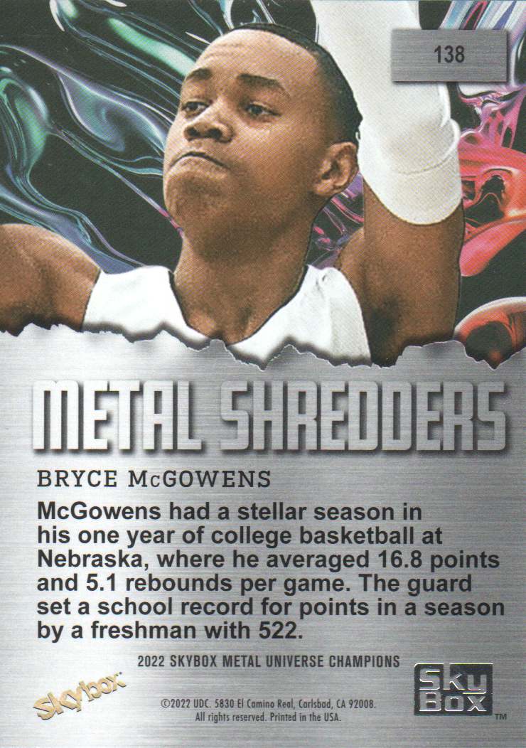 2022 - Bryce McGowens MS - Skybox Metal Universe Champions Aqua - #138