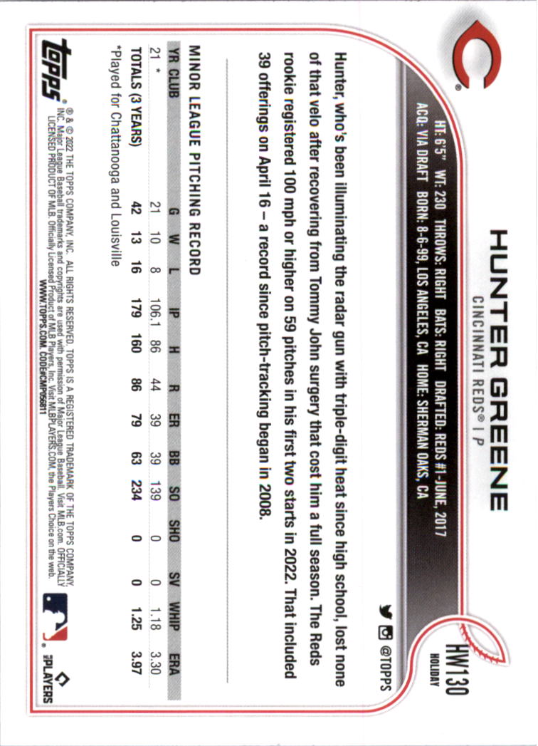 2022 - Hunter Greene RC - Topps Holiday - #HW130