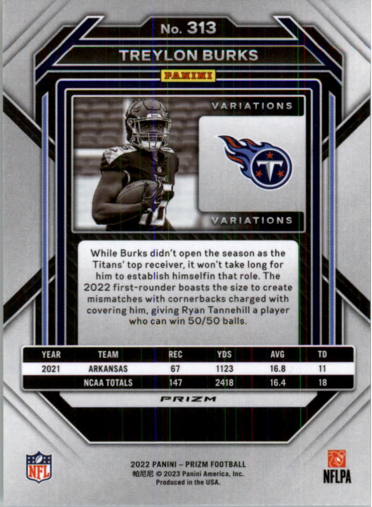 2022 - Treylon Burks - Panini Prizm Variations Prizms Silver - #313