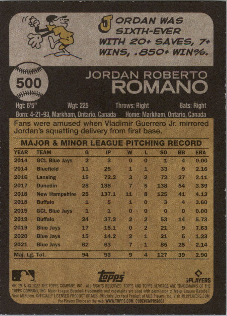 2022 - Jordan Romano SP - Topps Heritage - #500