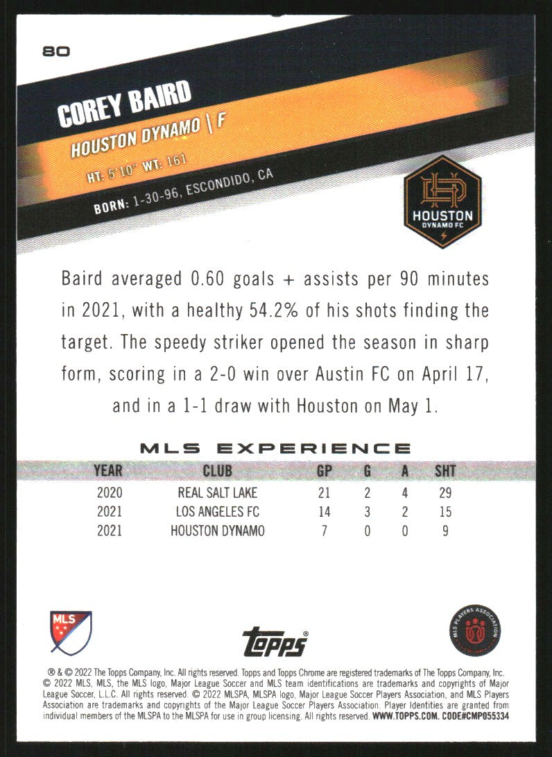 2022 - Corey Baird - Topps Chrome MLS - #80