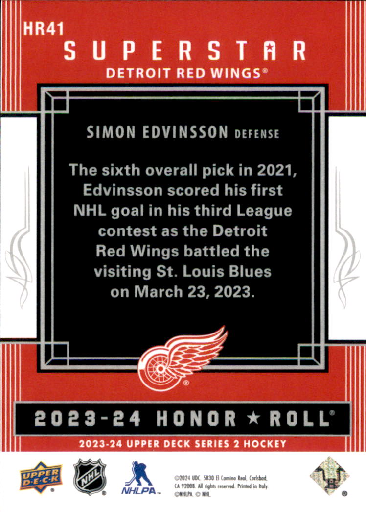 2023-24 - Simon Edvinsson - Upper Deck Honor Roll - #HR41