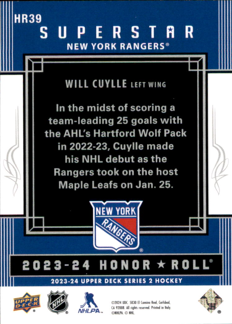2023-24 - Will Cuylle - Upper Deck Honor Roll - #HR39