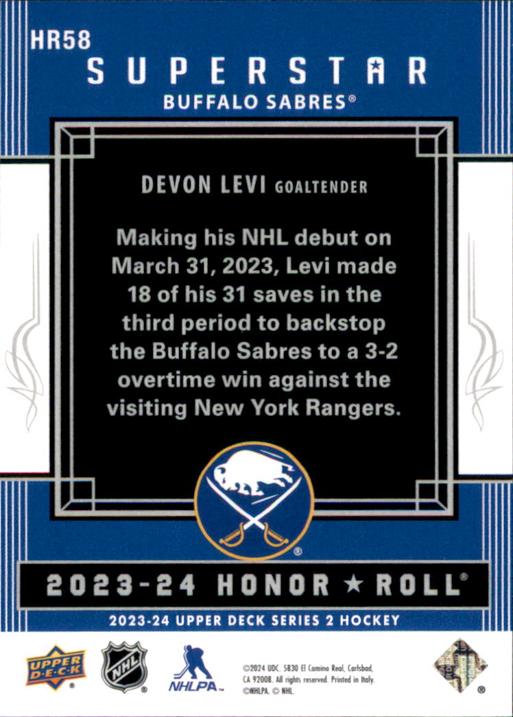 2023-24 - Devon Levi - Upper Deck Honor Roll - #HR58