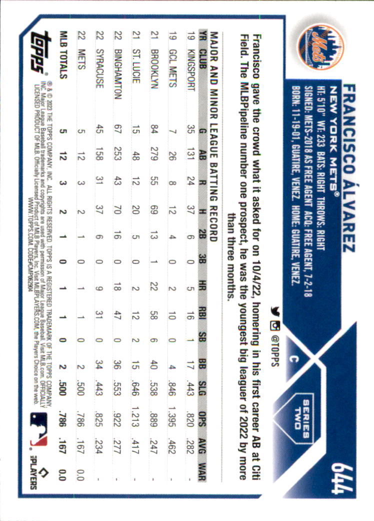 2023 - Francisco Alvarez RC - Topps - #644