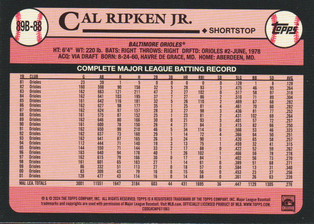 2024 - Cal Ripken Jr. - Topps '89 Topps - #89B88